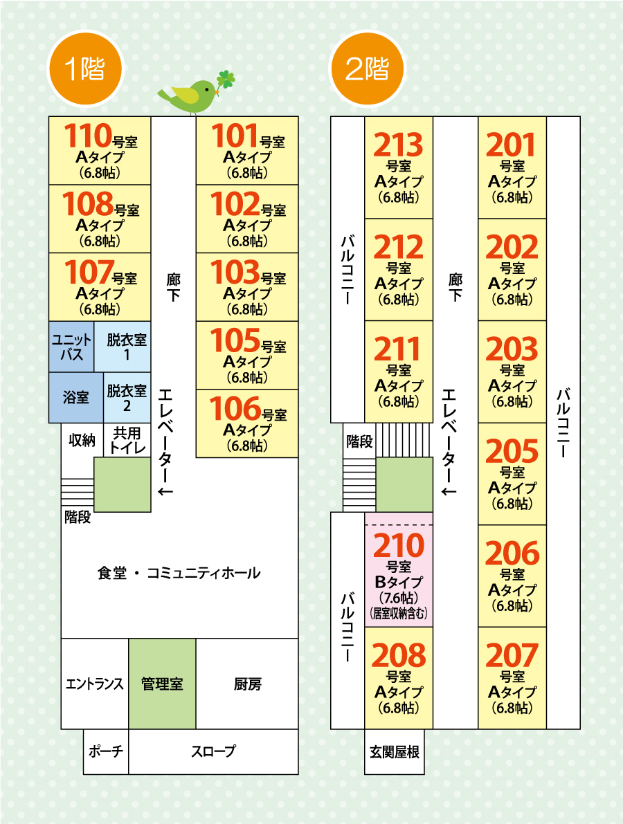 ◆共有設備:コミュニティホール・食堂(ダイニング)・洗濯機・エレベーター・浴室(ユニットバス)・バスリフト付き(車椅子対応)