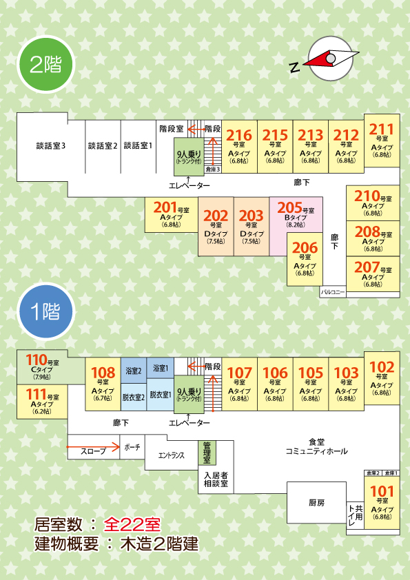 ◆共有設備:コミュニティホール・食堂(ダイニング)・洗濯機・エレベーター・浴室(ユニットバス)・バスリフト付き(車椅子対応)