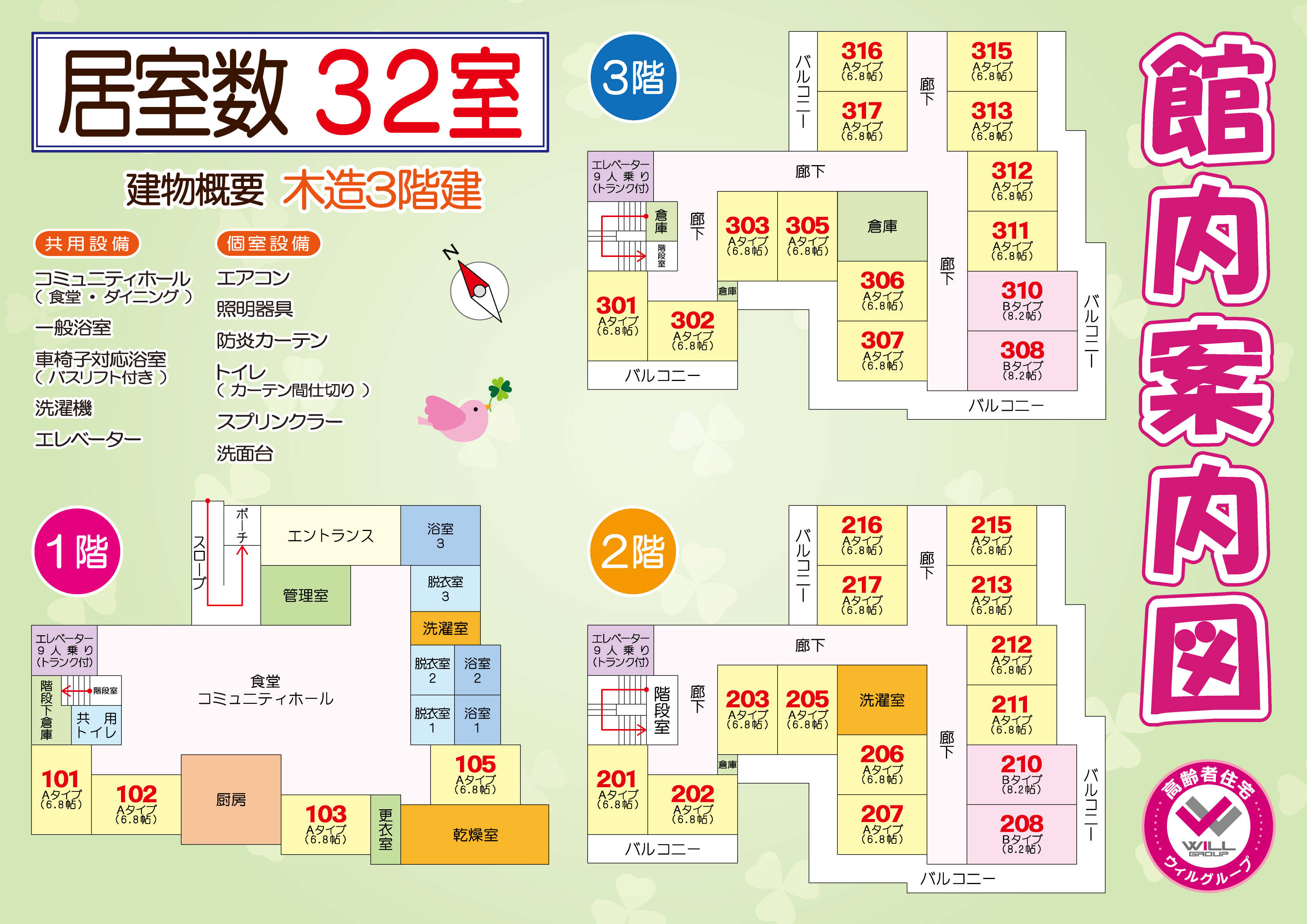 ◆共用設備:コミュニティホール(食堂・ダイニング)・一般浴室・車椅子対応浴室(バスリフト付き)・洗濯機・エレベーター